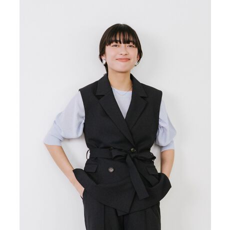 少し短めの丈感に設計したジレは、ボトムを選ばずスタイリッシュに着用できる仕組み。