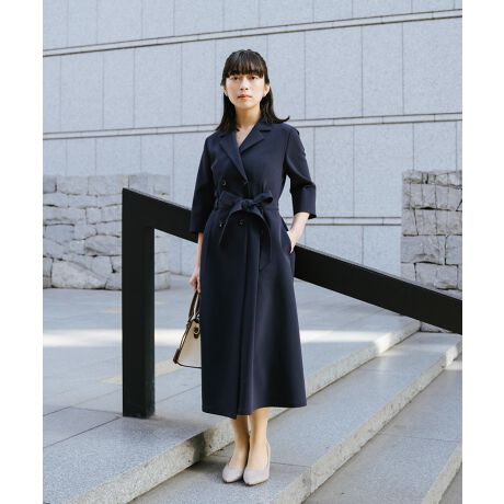 テーラードでダブルブレストなデザインが上品で美しい7分袖ワンピース。