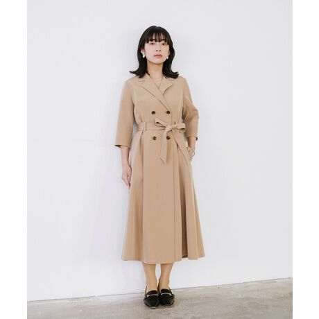 テーラードでダブルブレストなデザインが上品で美しい7分袖ワンピース。