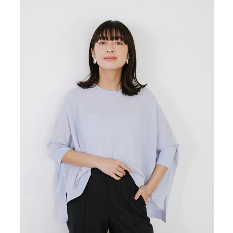 動くたびに揺れる編地が涼しげな印象を与え、シンプルなコーディネートにさらっと合わせるだけで着映えする一枚。