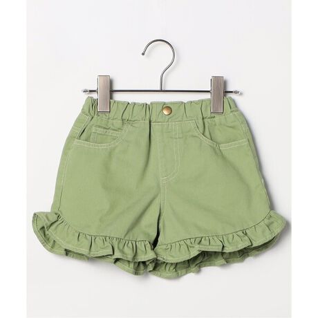 ラウンドカットの裾とフリルをあしらったショートパンツ。