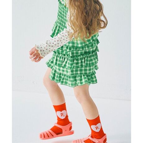 >>P207066 先染めチェックのシャーリングビスチェ&トップスセット