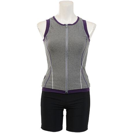 水着で「撥水加工」?と、不思議に思われる方もいらっしゃるかと思います。なぜ撥水加工を行なうのか?プールなどに含まれる塩素が生地を傷めていくんです。だから撥水加工を行なうことで、生地に塩素がつき難い構造にしています。商品の仕様面においても、上下がセパレート式のため着用がしやすく、かつ上下を繋ぎとめるめくれ防止スナップがついています。気になるわき肉もしっかりガード。