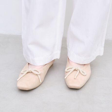 ロープリボンがアクセントになった、スクエアトゥバレエシューズ。