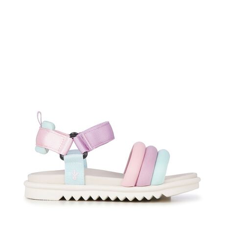[型番:71052807]滑りにくいTPR素材の波型形状のアウトソールと柔軟性と疎水性の高いウレタン素材の天板の仕様にアッパーは伸縮性のあるネオプレーン素材とナイロンストラップの仕様でフィット感の良い水際での着用にも適したKIDSスポーツサンダルの新製品。パステル調のトリコロール配色のカラーリングが見た目にも夏らしい清涼感のあるアイテム。【K12525】