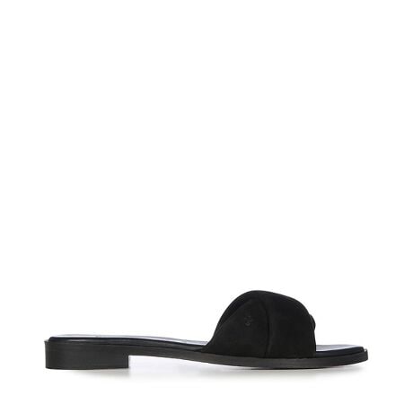[型番:71052286]スエード素材の2本クロスベルトタイプのレザーフラットサンダル。ベルト部分にEMUのロゴをさりげなく刻印。シンプルなデザインでスタイリングを選ばず合せられるアイテム。【W12891】