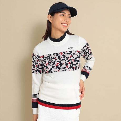 [型番:71681928]ポリエステル高混率の扱い易いセーターです。カモフラージュ風フラワーとボーダーを組み合わせてエレガントさとスポーティーさを兼ね備えた雰囲気に仕上げました。【C23218200】