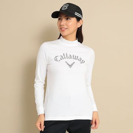 ゴルフ 天竺長袖モックネックロゴプリントシャツ