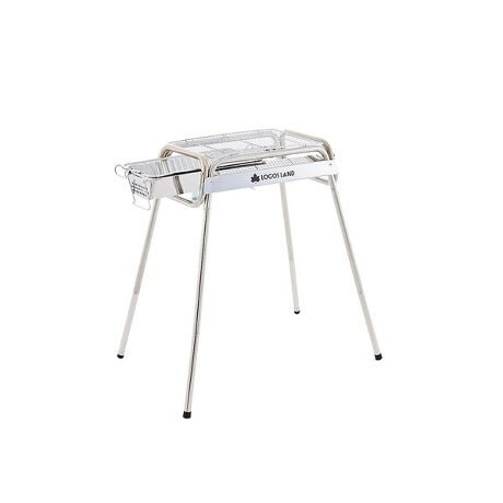 「ロゴスランド」公式アイテム。 使いやすい高さ80cm!お掃除楽ちん多機能ステンレスグリル。