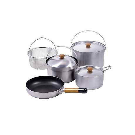 ライスクッカーとフライパンに熱しやすく冷めにくい「4層クラッド材」を採用し、熱ムラのない効率的な調理を実現 IH対応で、一通りの調理が可能で4〜5人分の調理をまかなえます。 ■サイズ: 収納時:約φ23×19.5(高さ)cm ライスクッカー:約φ21×11.5(深さ)cm、2〜5合炊き目安 フライパン:約φ22.5×5(深さ)cm ステンレス大鍋:約φ23×14.5(深さ)cm ステンレス片手鍋:約φ17×9(深さ)cm メッシュバスケット:約φ21×10(深さ)cm