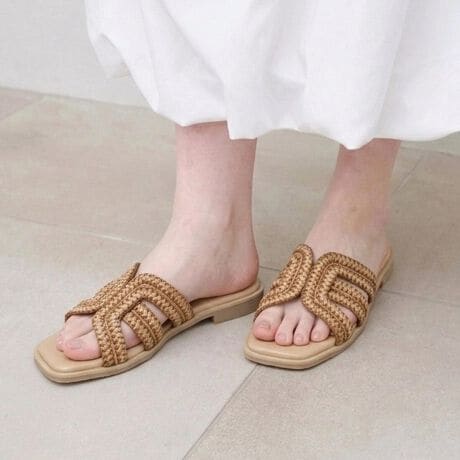 涼しげな編み込みデザインが、足元に軽やかな抜け感をプラスしてくれます。