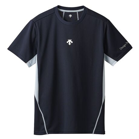 [型番:81621823]肩甲骨に沿ったステッチと背中にDESCENTEロゴを配置した半袖バレーボールシャツです。【DVUXJA52 NV】※掲載画像の仕様・デザイン・カラー等が予告なく変更される場合があります。あらかじめご了承下さい。