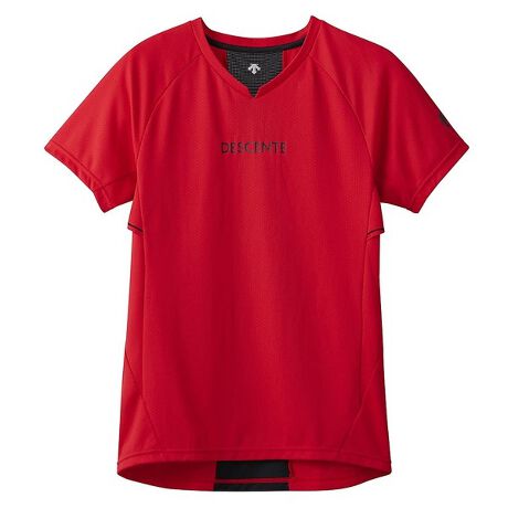 [型番:81621401]腕の振り上げ動作を意識したパターンを採用しています。凹凸感のある素材を採用し、発汗量の多い背中心にメッシュ素材を配置した半袖バレーボールシャツです。【DVUXJA50 RED】※掲載画像の仕様・デザイン・カラー等が予告なく変更される場合があります。あらかじめご了承下さい。