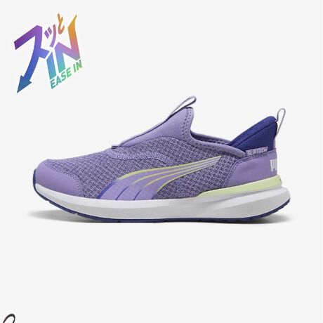 キッズスニーカーの中でもプーマらしいパフォーマンスニーズに特化してデザインを投入した一足。8歳以上のお子様におすすめのサイズ。プーマの新しいSLIPTECHテクノロジーにより、手を使わずにシューズを脱ぎ履きでき、ユニークなステップインスタイルを演出します。アッパーはスリップオン仕様で、耐久性と足運びをサポートするトラクションが特徴。ミッドソールには、ProFoamと耐久性のあるラバーポッドがどんな路面でもトラクションを発揮します。伸縮性のあるネオプレンとウェビングが元気に動き回るお子様の足にぴったりフィットします。