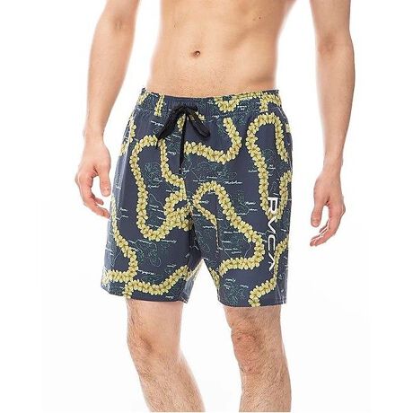 [型番:81804387]左足側面にRVCAロゴをプリントしたボードショーツ。伸縮性のあるウエストにドローコードを内蔵し、あらゆるシーンで快適な着用感を提供します。フラップ式のヒップポケットはファスナーが付く。環境への負荷を配慮して、素材の一部にリサイクル繊維を使用しています。【BE041526】