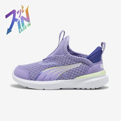 キッズスニーカーの中でもプーマらしいパフォーマンスニーズに特化してデザインを投入した一足。0歳から4歳のお子様におすすめのサイズ。プーマの新しいSLIPTECHテクノロジーにより、手を使わずにシューズを脱ぎ履きでき、ユニークなステップインスタイルを演出します。アッパーはスリップオン仕様で、耐久性と足運びをサポートするトラクションが特徴。ミッドソールには、ProFoamと耐久性のあるラバーポッドがどんな路面でもトラクションを発揮します。伸縮性のあるネオプレンとウェビングが元気に動き回るお子様の足にぴったりフィットします。