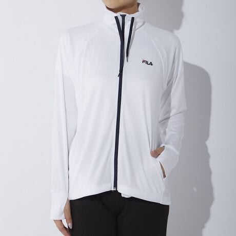 [型番:82534637]水陸両用のUVウェア。スムース生地で軽量。UV遮蔽率90以上・接触冷感で真夏でも活躍できるラッシュ。両脇のメッシュ切替で涼しさUP。胸元のFILAロゴでブランドイメージを。左右両脇にポケット有り。指穴付きなので手の甲を衿が高いので首元も日焼け防止対策には必需品のラッシュガードです。【324671】