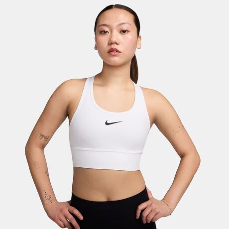 運動中も、 パッドのずれにさよなら。 パッドを縫い込んで固定したスウッシュ ブラ。ずれたり折れ曲がったりする心配もなく、ハードな運動に専念できます。 ワークアウトやダンスクラスに最適。ミディアムサポートで快適に包み込み、ずれを防止します。 順応性に優れた素材とロングラインのデザインを採用。激しいワークアウトに挑んでも体を快適にカバーします。順応性のあるフィット感と素材 軽量で順応性に優れた素材が、素肌のようにフィット。運動中も抜群に快適です。 休憩時にはすばやく元の状態に戻り、ぴったりとしたホールド感が回復。 伸縮性に優れた繊維により着脱が簡単で、体を反らせる必要はありません。さらりと快適 Nike Dri-FITテクノロジーが、肌から汗を逃がしてすばやく蒸発。さらりと快適な状態をキープします。 細いレーサーバックストラップに、メッシュパネルを統合。背中の通気性を強化しました。商品の詳細 本体:ポリエステル72、スパンデックス28 背面中央メッシュ:ポリエステル82、スパンデックス18 前面裏地:ポリエステル81、スパンデックス19 パネル裏地:ポリエステル72、スパンデックス28 背面中央裏地:ポリエステル82、スパンデックス18 パッド裏地素材:ポリエステル100 パッド:ポリウレタン100 洗濯機洗い可能