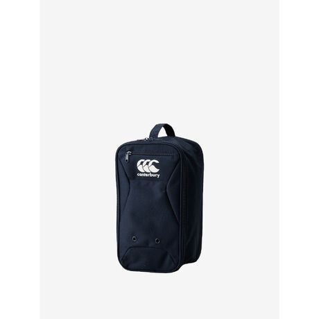 大きくコの字に開くスクエア型のシューズバッグです。タテ上側には取っ手がついており、ファスナーつきミニポケットを配備。中の蒸れを軽減するエアリングがついています。