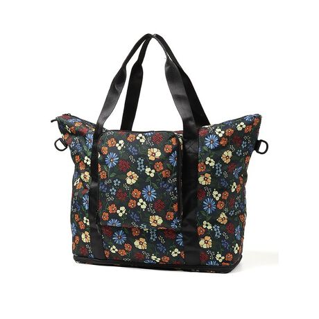 キャリーケースの上に載せられる大容量トートバッグ。300Dのポリエステル生地を使い、丈夫ながらも軽量でパッカブル収納が可能。靴などは下部にセパレートできるコンパートメント付きで旅行先などで活躍するバッグです。