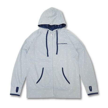 裏地の総柄が目を引くパーカータイプのラッシュガードです。遮熱機能も付いています。