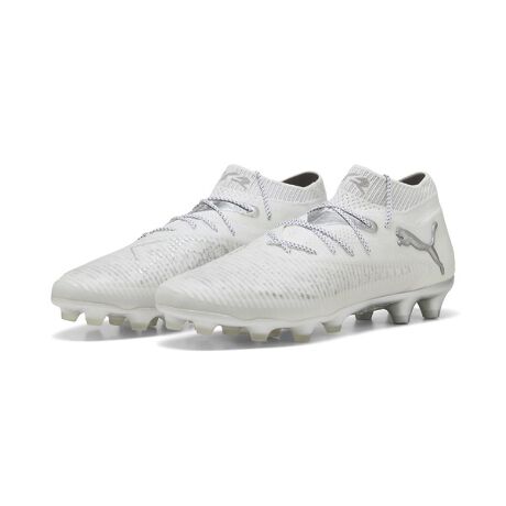 \n 商品情報\n固い土、人工芝用\n\n\n創造力を解き放ち、違いを生み出すプレイヤーのために作られた新しいフィットのスパイク、FUTURE 8 ULTIMATE。\n\nプレーの限界を超え俊敏な動きを可能にするプーマ FLEX AGILITY アウトソール、優れたボールコントロールのGripControl Pro、涼しさを保つ Ortholite O-Therm?。シューレースあり、無しでプレイできます。\n\n 特徴 \n\nリサイクル素材使用:より良い未来への一歩として、アッパー部分に30以上のリサイクル素材を使用しています\n\nADAPTIVE/PERSONALIZED FIT(アダプティブ/パーソナライズド フィット)\n\n1PWRTAPE: 足甲部に新しくなったPWRテープを配置し、足首周りの完璧なロックダウンと安定性を実現。またトライアングル形状は、伸縮性とそれぞれの足の形へのフィッティングをもたらします。\n2FUZIONSKIN: 伸縮性の高いLYCRARと伸縮性に優れたエンジニアードニットで構成されたシューズのベースレイヤーは、第二の皮膚として機能し、足の動きに密着し、さらに適応性とサポート力のあるフィット感を実現します。\n3FUZIONPODS: 3D PODSは、足の動きに沿いつつ全ての動きに対して、FUSIONSKINが足に沿うつくりになっています。また3D仕様のPODSがボールタッチ時の足のサポートをもたらします。\n\nAMPLIFY SKILLS(アンプリファイ スキル)\n\n1High density mesh: バンプ部分に施された高密度メッシュのオーバーレイにより、凹凸がボールのグリップ力を高め、様々なボールタッチにおけるのコントロールを最大限に高めます。\n2Grip Control Pro: ボールへのグリップ力を高めるGripControl Proをトップレイヤーに使用。\n\nINSTINCTIVE MOVEMENTS(インスティンクティブ ムーブメント)\n\n1De-copled plate : 2プレート仕様になっており、ヒールエリアは踏ん張りをサポートする為に設計されたプレート構造。フロントエリアは、俊敏なステップや動きをもたらす為に、屈曲性が高くも、安定感のある仕様に。\