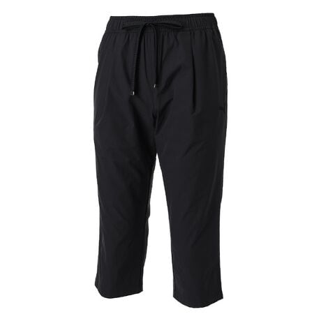 ESSコレクションより、ポリエステル素材のウーブンパンツ。きれいなシルエットを実現する3/4丈です。ストレッチ機能を備えており、伸縮性が高く体の動きを妨げません。また、UV加工(UPF50+)、撥水加工を施しており、シンプルで洗練されたデザインながら高い機能性を持ち合わせた一着。普段使いはもちろん、アクティブシーンでのご使用もおすすめです。