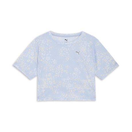 PUMA独自の吸水速乾DRYCELL機能搭載のショート丈Tシャツ。花びら模様が入った新しいレオパード柄が全体的に印象的な春にぴったりのTシャツです。