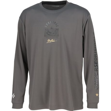 [型番:84320431]CONVERSEロゴとバスケットリングのフォトを組合わせたグラフィック。シンプルで大人っぽいデザイン。左袖にもロゴプリントが入っているのもポイントの1枚。【CBG242356L-1800】