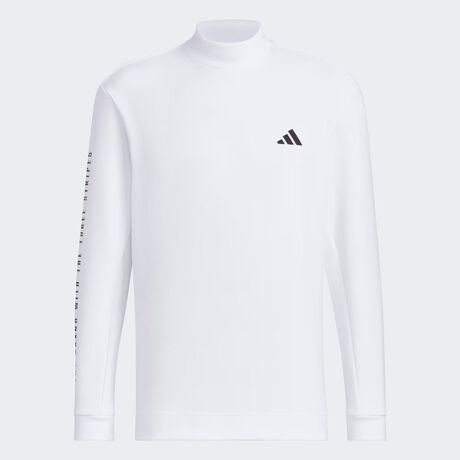 レギュラーフィット、モックネック、ポリエステル100、AEROREADY、身頃と共布のカフと裾、汗を素早く吸収・発散する素材、袖と背中に高密度ラバープリントアートワーク