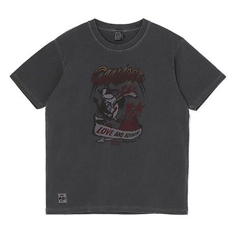 綿花を紡績する段階で落ちた綿や使えない不均一な糸、余ってしまった糸など、そのままでは原料として使えない糸を集めて紡績して、再利用した糸を使用したリサイクルコットンシリーズ。今期はピグメント加工を施し、古着のような風合いを出したシリーズになっています。 70年代のメタルバンドTシャツをイメージしたグラフィックです。デビルに扮したブービーが、ギターで炎を起こしながらキャンプファイヤーを楽しんでいます。全体的にハードロックな尖った雰囲気に仕上げました。