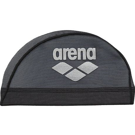 [型番:84811579]アリーナロゴを大胆にプリントした定番のメッシュ素材のスイムキャップ。水抜けが良く、ハードなトレーニングでもムレ感がなく快適に泳ぐことが可能。ハードなトレーニングするスイマーにも、ゆったり泳ぎたいスイマーにも、練習時の着用におススメ。【AS5SSC41U BKSL】