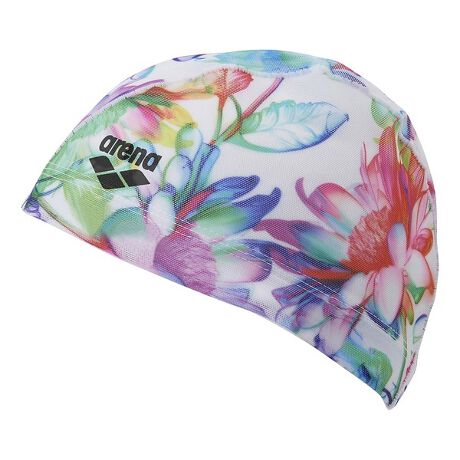 花柄をシーズンテーマ「WATER ILLUSION」であるグラフィックデザインにarenaらしくアレンジしたスイムキャップ。同デザインの水着(AS5SWM06L、AS5SWM11L、AS5SWM07M)とのコーディネートがおススメ。水抜けが良く、ハードなトレーニングでもムレ感がなく快適に泳ぐことが可能。ハードなトレーニングするスイマーにも、ゆったり泳ぎたいスイマーにも、練習時の着用におススメ。公式大会招集所持ち込み可。arenaロゴが着用者の左側になるように着用。