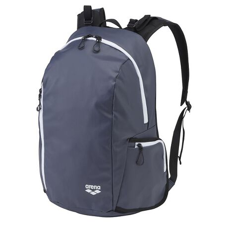 プールサイドでも使用しやすいはっ水素材を使用し、機能面にこだわったバックパック。正面のメインルームは大きく開くことで物の出し入れがしやすく、約30L収納可能。すぐに出したい物を収納するのに便利な縦方向へ開くファスナーポケットと、メインルーム内部にはPCやA4ファイルが収納できるポケット付き。パスケースや小物等の収納に便利な両サイドのポケットは背負ったままでも開けやすいファスナー設計。側面ポケットの収納は底メッシュ設計になっているので水はけがよく、ボトルや折りたたみ傘の収納が可能。また背面には通気性のあるバックパネルを採用し、さらに肩パットに付属しているショルダーベルトを調整することで身体にフィットしやすい。