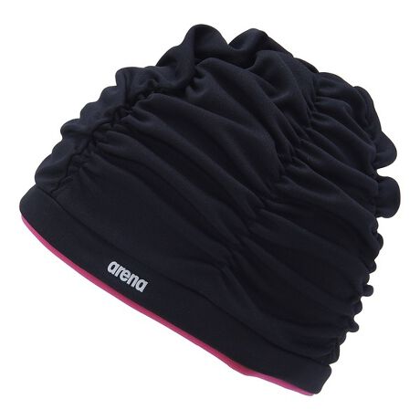 シャーリングが施されたテキスタイルキャップ。頭への締め付け感が少なく、長時間の使用でも快適に使用可能。ゆったりなかぶり心地のため、水中ウォーキングをされる方や髪の長いスイマーにおススメ。arenaロゴが着用者の左前になるように着用。