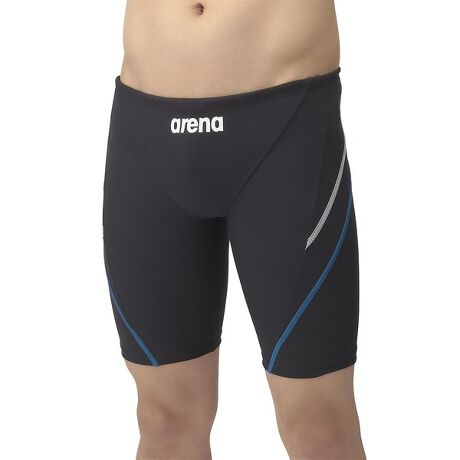 [型番:84812734]トレーニングカテゴリー「TOUGHSUITシリーズ」。大会に向けて練習を重ねる頻度が高いスイマーにオススメの練習用水着。環境に配慮したリサイクルポリエステル素材「タフスキンE」を使用し塩素に強く長持ち。脇ステッチをシンプルに入れたデザイン。前当て部分に黒の裏地付きハーフレッグタイプ水着。【AS5SWM00M BKBL】