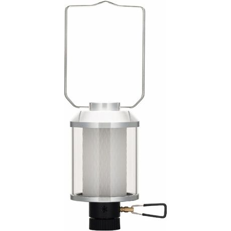 上部にあるハンギングループでランタンを吊るすことができるサイトを照らすメインランタンとしても活躍するギガパワーバッテリー専用ランタンです。火を使わないため、小さなお子さまも安心。ガラスシェード内の導光筒は、ガスランタン特有の雰囲気を出すため、マントルをイメージした網のパターンとなっています。また、ガスランタンのイメージに合わせたツマミを半時計回転方向に回すと電球色(明るさ最小)から昼光色(明るさ最大1000ルーメン)へと徐々に明るさと色が変化させることができ、明るさの微調整が可能。また、ツマミを押し込むと「ON(通常点灯モード)」?→炎のゆらぎを楽しむことのできる「ゆらぎ点灯モード」→「OFF」と切り替えることができます。通常点灯モードもしくは、ゆらぎ点灯モード時に2回連続でツマミを押し込むと、それぞれのモードの状態で「おやすみモード」に切り替わります。おやすみモードでは、45分後から徐々に明るさが弱くなり、60分後に自動消灯してくれます。