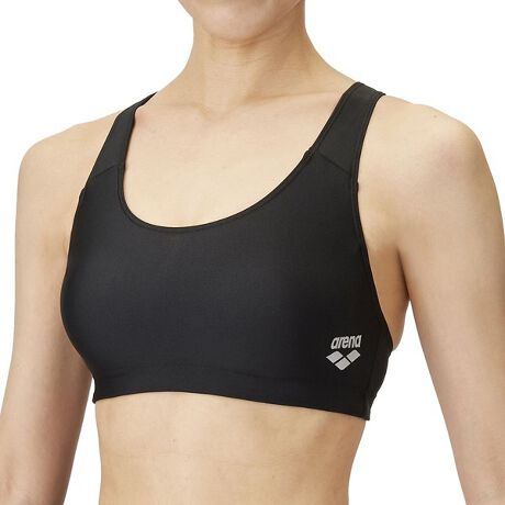 バストも泳ぎもしっかりサポートするブラトップ。着脱しやすく、胸のズレが気にならない縫い込みパッド仕様。水着と重ね着することで、安心感をもって快適に泳げます!
