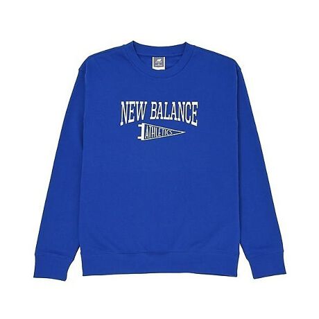 フロントにニューバランスとペナントのグラフィックをプリントしたクルーネックスウェット。
