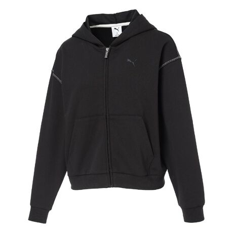 ESSコレクションから、PUMA MIX CLOTHのダブルニット素材を使用したリラックスフィットのフーデッドジャケットです。快適な着心地を実現する吸湿速乾性に優れたPUMA MIX CLOTH素材を使用しているため、1日中さらっと着用いただけます。シーンを選ばないエッセンシャルなデザインながらディテールにこだわった一枚。パンツやスカートなどボトムスとのバランスがとりやすい、ボクシーなシルエットと丈感に仕上げています。左胸のPUMAキャットロゴはフェミニンな印象のパフプリント。大きめのポケットや、さりげなく随所に採用しているコントラストカラーのフィッシュボーンステッチも女性らしい印象を与えるアクセントになっています。