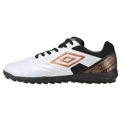 (FLAGSHIP流通限定展開商品)『ACCERATOR』シリーズの人工芝対応シューズ 。日本国内企画のワイドラスト前足部を更に広げたEXワイドラスト。前甲部の縫製をなくし、足馴染み感を高めるノンステッチパターンを採用。ターフコート向けソール。クッション性・反発性を考慮したインジェクションEVAをミッドソールに採用。かかと外側へロゴとダイヤモンドテープをプリント。約275g(27.0cmで計測)