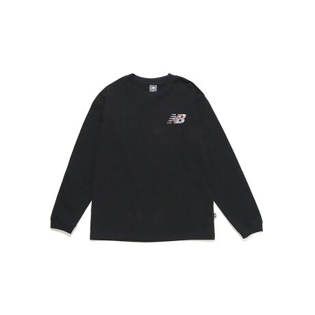 [型番:85444354]前面にアメリカらしいアイコンでコラージュしたNBロゴのグラフィックをプリントしたロングスリーブTシャツ。しっかりと厚みのある210gのコットンジャージ生地を採用。【MT51650BK】