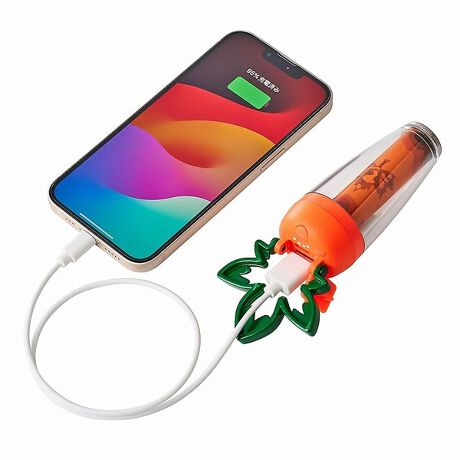 にんじんをかたどったデザインの小型ランタン。蓄電式なので電池不要で、USBケーブルを使えばスマートフォンやタブレットの充電もできる。点灯モードは白色のほか、にんじんらしくオレンジ色に光る暖色もあり。三脚に対応したネジ穴付きで、卓上ランタンとしても。