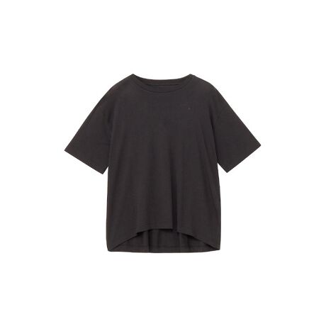 [型番:85415206]生分解性に優れたリサイクル繊維が原料の、サステナブルを考慮した素材を採用した半袖Tシャツ。不要衣料の端材を回収したリサイクルレーヨンにコットンを混紡した生地は、やわらかな肌触りとドレープ感が特徴です。ドロップショルダーでゆったりめのシルエットの、女性的なデザイン。裾幅を広めに仕上げています。左胸には身生地と同系色の小さめの刺繍ロゴを配置しています。【NTW32542 K】