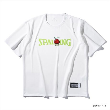 [型番:85783132]大人気TVアニメ『ONE PIECE』とのスペシャルコラボレーションアイテム。SPALDINGロゴの一部を、悪魔の実”ヒトヒトの実”に置き換えたプラクティスシャツ。使用済みペットボトルを使用したエコフレンドリーなリサイクル生地を使用しています。【SMT25106P】