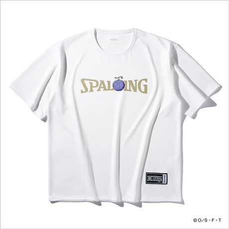 [型番:85783017]大人気TVアニメ『ONE PIECE』とのスペシャルコラボレーションアイテム。SPALDINGロゴの一部を、悪魔の実”ゴムゴムの実”に置き換えたプラクティスシャツ。使用済みペットボトルを使用したエコフレンドリーなリサイクル生地を使用しています。【SMT25104P】