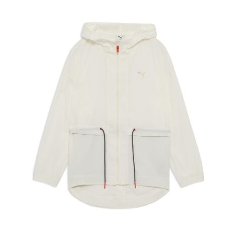 程よい透け感で、ジムの行き帰りも楽しくなるアイテム。背面はドロップテール仕様でお尻が隠れる着丈。背面のスリットが女性らしいシルエットを演出し、ウエストの高め位置のドローコードを絞れば、スッキリとした腰高スタイルが叶います。パンツやタイツとも好相性です。