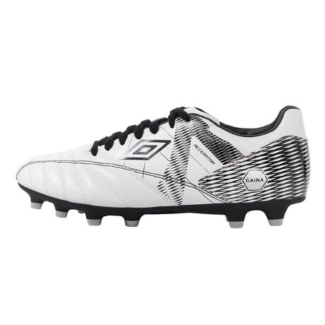 『ACCERATOR』シリーズの合成皮革アッパーシューズ。フットボールの激しい動きの中でパフォーマンスを発揮することをコンセプトにラスト開発を実施。アンブロが持つフィッティングサポートファンクションのAフレームをグラッフィクデザインで表現。インステップキック時のインパクを意識しやすいプリント加工を採用。プレー時の安定感向上を目指し、指が動かしやすい前足の適度な幅と、かかと回りの立体形状にこだわり設計。ラスト設計を活かせるような中足部のパターン構造やシューホールデザインを採用。かかと周辺は自然な収まりを目指して材料選択を実施。人工芝、天然芝、ハードグランド対応のアウトソールはパフォーマンスアップを目指し、刺さりと抜け易さを目指した設計を採用。遮熱塗装材のGAINAをシューズ中底に搭載することで外部からの足裏への熱伝導を減らし、足裏のトラブルを軽減。約270g(27.0cmで計測)