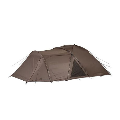 設営が簡単で、使い勝手も抜群。広い前室とサイドメッシュで快適性も向上した2人用のスタンダードテントが登場。入門用テントとして長年愛され続けている、スノーピークの定番テント「アメニティドーム」を大きくリニューアルしました。従来の耐風性と使い勝手の良さはそのままに、シックで自然に馴染むカラーリングに一新し、フライシートやフレームの色合いも見直すことで、どの角度から見ても美しいシルエットを実現しています。また、前室を左右対称のデザインにすることで面積が拡張され、両サイドからのアクセスが可能になりました。快適性も向上し、インナーフレーム構造をアウトフレーム構造に変更することで、雨の日でもインナーテントを濡らすことなく設置が可能です。インナーテントを外せば小型のシェルターとしても活躍します。メッシュパネルが両サイドに追加され、通気性が大幅に向上しました。サイドパネルにはジッパーが付いており、横からの荷物の出し入れが可能に。さらに、前室にはサイドウォールを取り付け、雨天時には正面パネルを跳ね上げることができるので、風通しの良い広々とした快適空間を実現できます。設営性も改良され、インナーテントを取り付けたままでの設営・撤収が可能になり、最小限のフック数でスムーズかつ簡単な設置ができるようになりました。このようにスペックを見直した結果、まさに現代のスタンダードテントとして相応しい仕様へとアップデートされています。