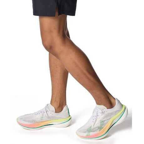 前モデルと同様のジオメトリーで、2層のミッドソール・フォームの間にフルレングスのカーボン・プレートを配置。ボトムとサイドウォールの両方が露出している。